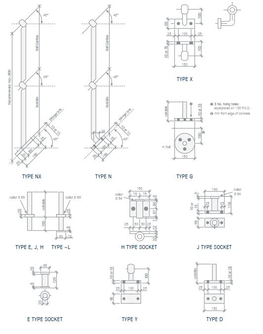 Socket set screws or grub screws only fitted to balls of one standard per run where there is possibility of rail movement, unless noted otherwise.